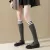 These stockings stand out with their solid colors—black, white, and gray—paired with subtle letter embroidery, adding a unique yet understated detail. The knit weaving ensures durability while maintaining breathability, making them suitable for everyday wear. Measuring just right to reach the knees, they offer a flattering fit that pairs perfectly with skirts, dresses, or shorts.